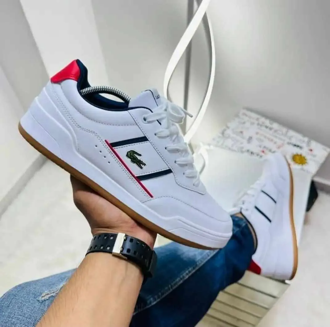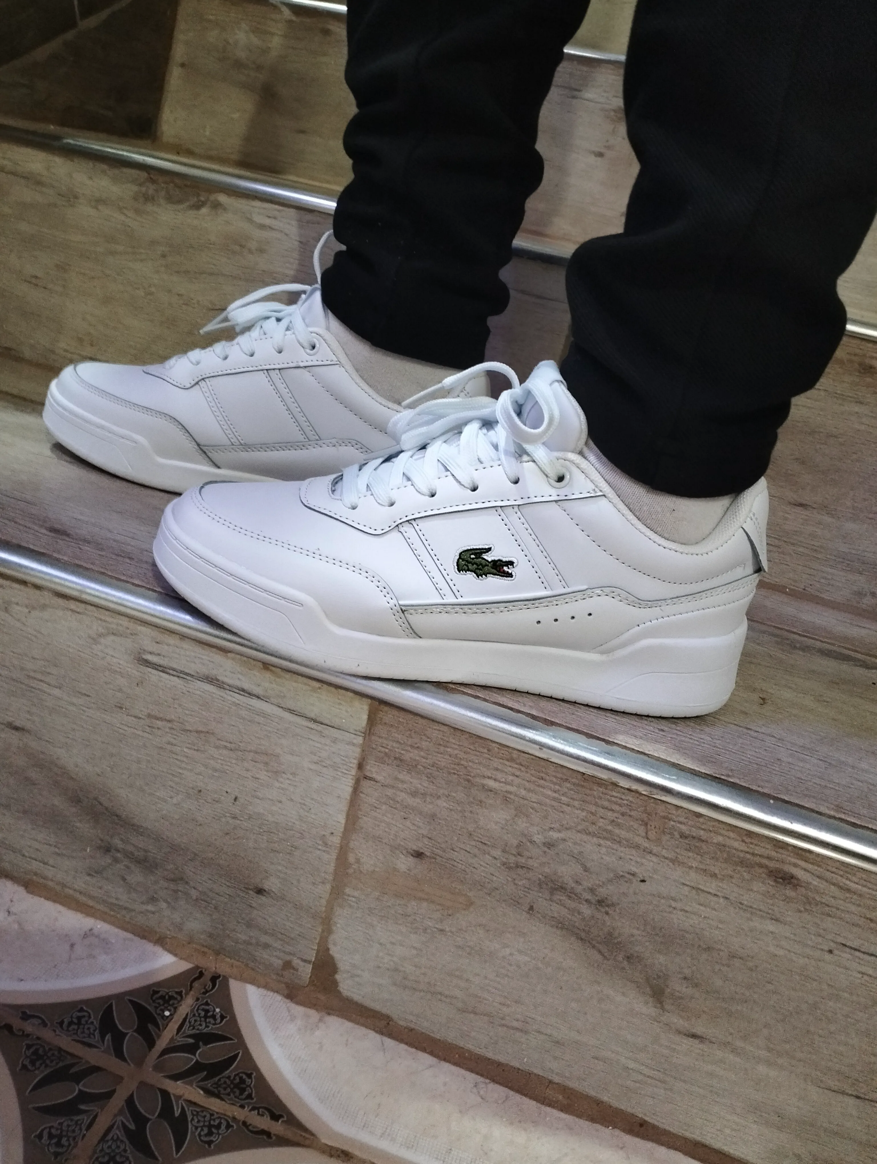 Lacoste Men's Game Advance Defined by an urban look with heritage touches, this leather sneaker sits on a thick rubber sole, while mesh linings ensure breathable comfort. A pop of color on the heel tab lends an understated finish.